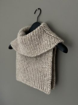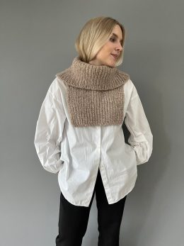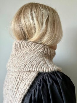 Этот свитер связан спицами из мягкой пряжи с выразительным крупным узором, который напоминает уютные зимние вечера у камина. Особенность модели — широкий высоки...