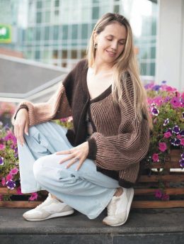 Темно-синий цвет имеет особый характер и часто кажется непостижимым и мистическим, например в такой элегантной интерпретации, как у нас. Двухцветный кардиган