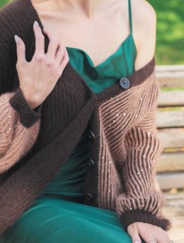 Мягкий и уютный кардиган с широкими полосами нежных оттенков и объемными рукавами, идеально подходит для прохладных дней. Кардиган
