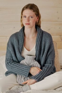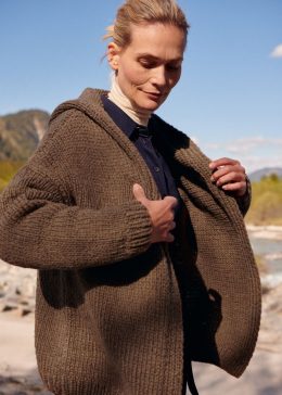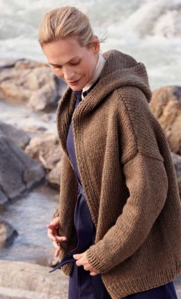 Этот кардиган напоминает традиционные вязаные изделия, которые использовались для защиты от суровых погодных условий. Объемная вязка и глубокий капюшон делают е...