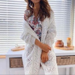 Этот кардиган выполнен в технике сетчатой вязки, которая имеет глубокие исторические корни. Сетчатая вязка впервые появилась в 19 веке как способ создания легки...