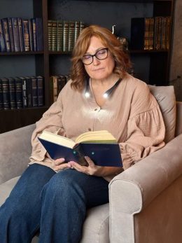 Лампа для чтения, изображенная на фотографии, представляет собой современное устройство, разработанное для комфортного чтения в условиях недостаточного освещени...