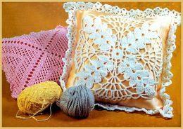Розовая подушка МАТЕРИАЛЫ: розовая пряжа "Сюжет" (30% шерсти/70% акрил, в 100 гр./225 м), ткань желаемого цвета, крючок № 2,5.. Размер: 26x26 см. ВЫПОЛНЕ...
