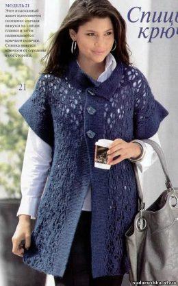Динный жакет вязанный поперек спицы и крючком