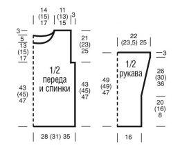 Оставшиеся 31 (35) 40 п. плеча закрыть на высоте 21 (23) 25 cм от начала пройм.