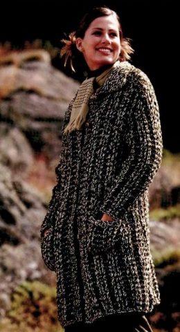 Плотность вязания, вертикальный рельефный узор: 13 п. и 22 р. = 10 х 10 см.