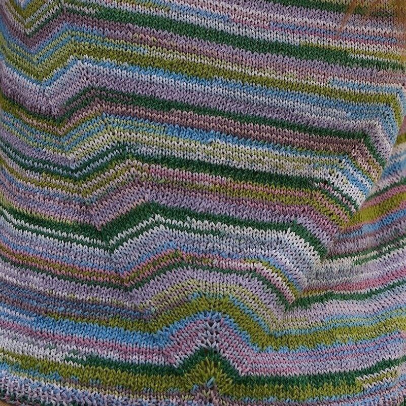 Эксклюзивный многоцветный вязанный топ с уникальной текстурой и разноцветными линиями, создающими эффект динамичных полос.