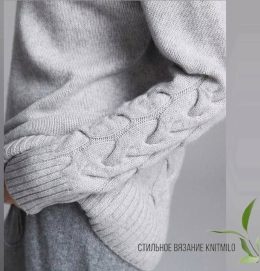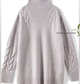 Уникальные плетеные узоры на рукавах и плечах создают неповторимый стиль. Высокий воротник добавляет уют и комфорт, а мягкая текстура делает его идеальным для прохладных дней.