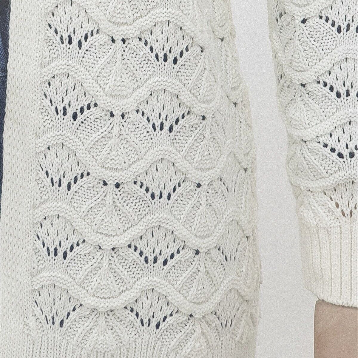 Изысканное сочетание классики и современного стиля, подчеркнуто тонкими деталями и аккуратной вязкой. Уникальные декоративные вставки и мягкая структура делают его идеальным для стильных образов в холодное время года.