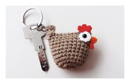 Ещё одна идея для вязания — оригинальный брелок для ключей в виде курочки. Для его создания не требуется специальная схема — достаточно использовать в качестве основы алгоритм вязания круга.