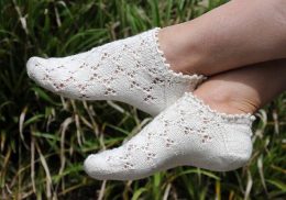 Эти носки выполнены с использованием изысканного ажурного узора, который придаёт им лёгкость и воздушность.
