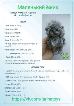 Этот милый вязаный ёжик, выполненный в технике амигуруми, покоряет сердца своим очаровательным видом. Его пушистая шерстка и яркая полосатая футболка придают иг...