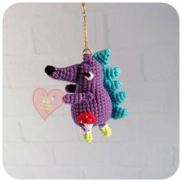 Этот уникальный вязанный брелок создан в форме яркого фиолетового ёжика с голубыми шипами. Забавное выражение лица и крошечный грибок в лапках добавляют ему осо...