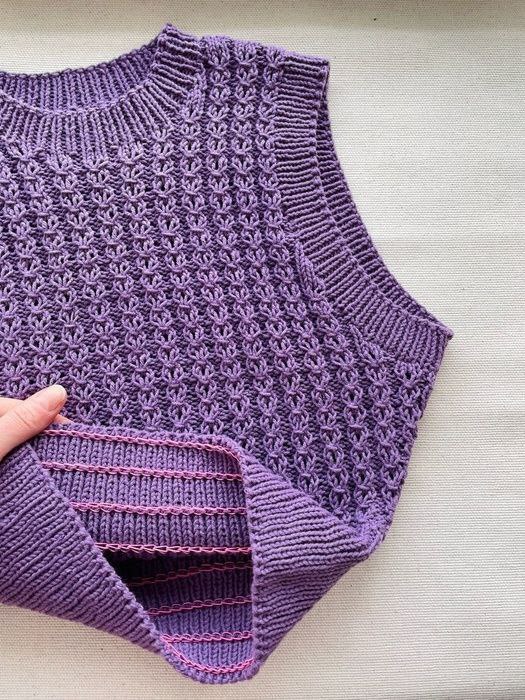 Описание «Violet mood» — летний топ. 🧶 Пряжа: Alize Cotton Gold (100гр — 330 метров), цвет 616. Расход 1,5 мотка на 44 размер.
