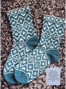 Эти восхитительные вязаные носки — настоящий шедевр! Сочетание глубокого зелёного и светлого узора придаёт им особую изысканность. Трикотажные детали и сложный геометрический орнамент делают их уникальными и уютными. Каждая петля пропитана заботой и теплом, готовая согреть в холодные дни.