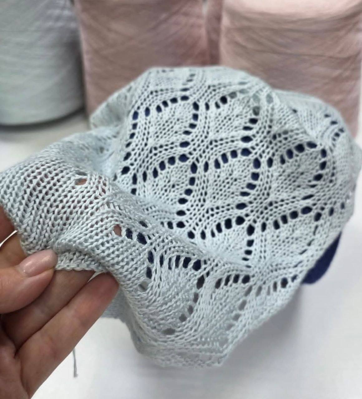 Изделие вовлечения в общение спицами с эффектными ажурными узорами и изысканными линиями, создающими легкую и воздушную текстуру, идеально подходит для уютных встреч и стильных образов.