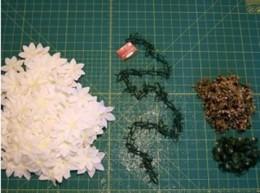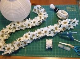 Теперь с помощью клея и пластиковых шариков клеим цветы к светильнику по всей его площади.