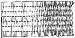 2. Разместите панели из ткани лицевой стороной вверх, соберите их в сборки, используя нитку-резинку. Отступив 2,5 см от верхнего края панели, прошейте по ширине каждую панель. Сделайте параллельные складки на расстоянии 1,2 см друг от друга (как мерку, можно использовать ширину прижимной лапки), пока собранная длина панели не будет равна 1/3 X.