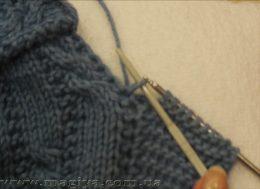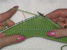 Наберите 6 петель и вяжите платочной вязкой, провязывая кромочные. При переходе на следующий ряд нитку проводите снаружи вязания. Изнаночные ряды провязываем лицевыми.