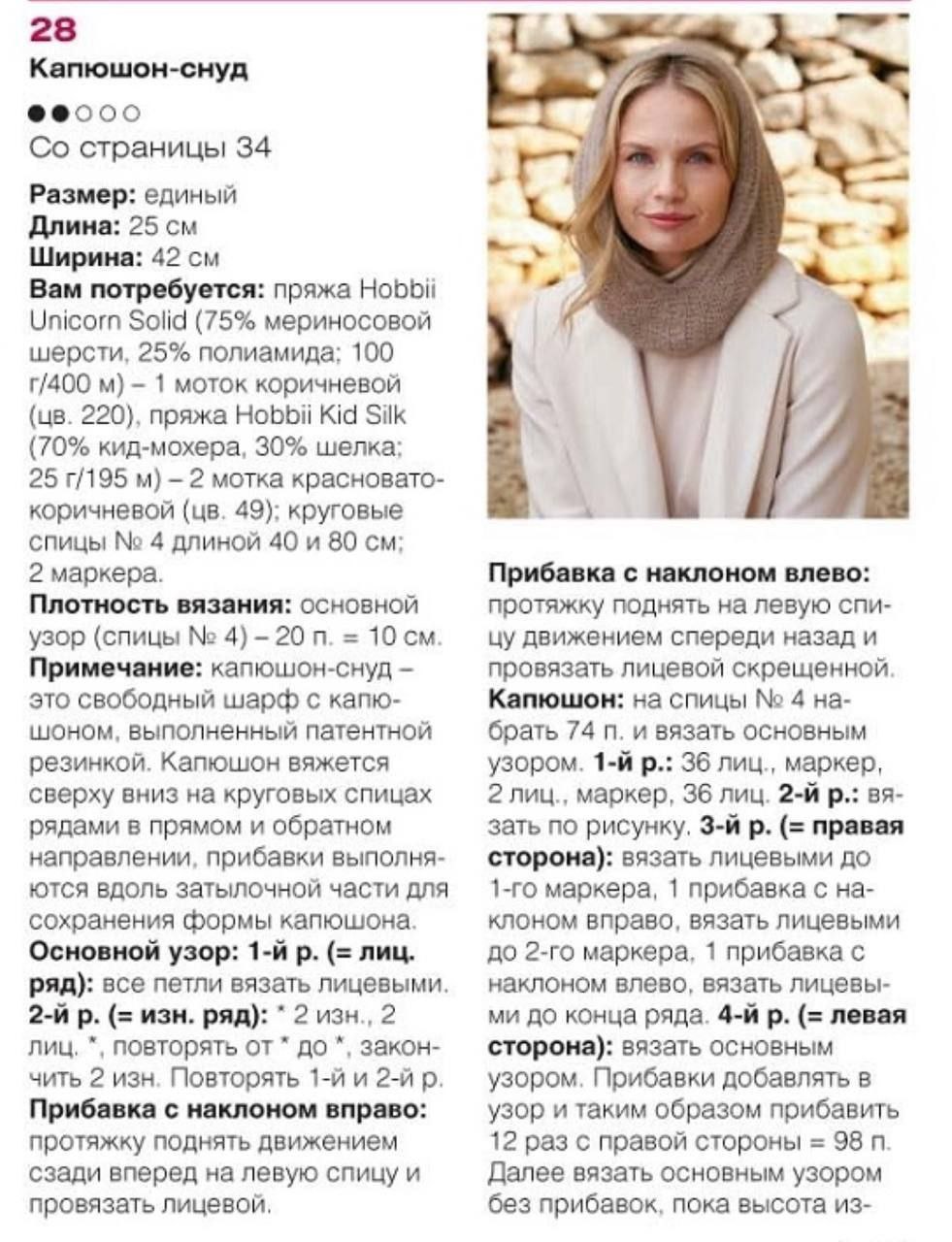 Капюшон-снуд с описанием 🧶 Мир вязания