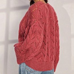 Какое великолепие! Этот кардиган, связанный спицами, поражает своим уникальным узором и текстурой. Выполненный в насыщенном цвете, он выделяется сложной вязкой и стильными объемными рукавами, создавая неповторимый образ.