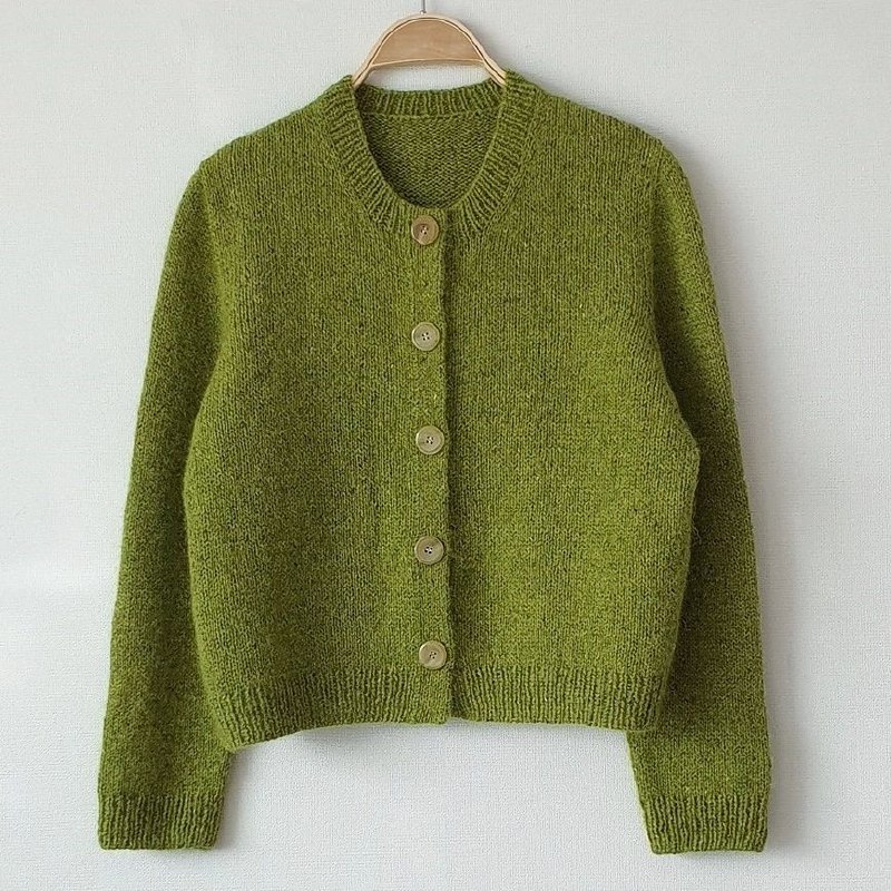 Мягкий и теплый кардиган выполнен спицами из нежного мохера с аккуратной резинкой по краям и оригинальными деревянными пуговицами, которые придают изделию особый шарм. Идеально подойдет для создания уютного образа в прохладную погоду.
