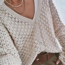Когда у вас есть такой ажурный кардиган, даже прохладный бриз становится поводом для улыбки. Этот вязаный шедевр с узорчатыми рукавами и аккуратными пуговицами добавляет стиль и уют в любой образ. Отлично подходит для тех, кто всегда мечтал быть одновременно и модным, и в тепле!