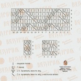 -Сначала (снизу вверх) идет узор из 4 петель, потом узор из 2 петель, потом из 16 и далее чередование продолжается.