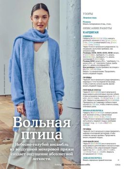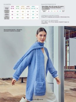 Небесно-голубой кардиган из воздушной мохеровой пряжи отличается мягкостью и лёгкостью, создавая ощущение абсолютного комфорта. Особое внимание уделено объёмному воротнику-шарфу и вместительным накладным карманам, которые придают модели стильный и уютный вид. Вязание лицевой гладью с резинкой обеспечивает элегантную фактуру и аккуратные края изделия.