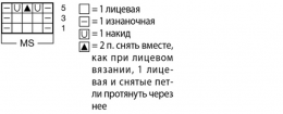 Число петель кратно 5 + 2 кром. Вязать по схеме. На ней даны только лицевые ряды. В изнаночных рядах все петли вязать по рисунку, накиды вязать изнаночными.