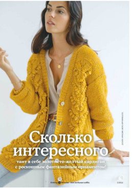 Легендарный кардиган, представленный в солнечно-желтых тонах, поражает своим роскошным фантазийным орнаментом. Изделие, популярное еще с 19 века, сочетает в себе уют и элегантность, идеально подходя для создания модного образа.