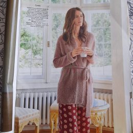 Незаметная тонкая пряжа создает эффект нежного объема, а мягкий пояс-ремень подчеркивает талию.