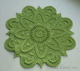 Описание вязаной салфетки зеленого цвета с лепестками.
