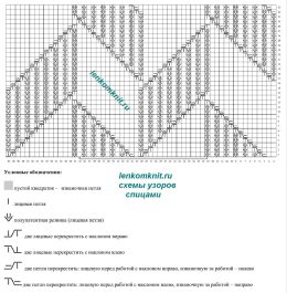 Вторая схема — фактурный узор для переда. Он вяжется в лицевых и изнаночных рядах, раппорт — 28 петель (плюс петля для симметрии) и 32 ряда.