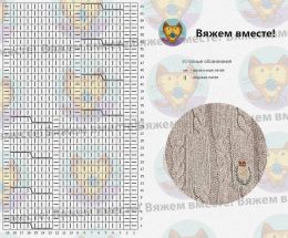 Вязаный образец с изящным плетением ромбов, создающим объем и текстуру, идеально подходит для декоративных деталей и стильных акцентов в изделиях. Узор спицами