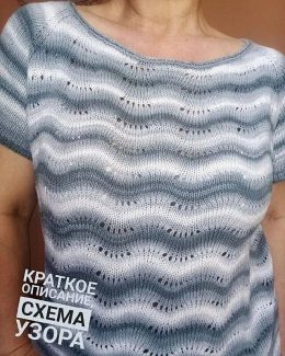 Летний топ с волнами: Это воздушное изделие ручной работы украшено нежным узором с эффектом волн, создающим уникальную текстуру и стиль. Топ выполнен из легкой пряжи, идеально подходящей для теплых летних дней.