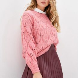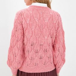 Знаете ли вы, что узор «листья» на свитере символизирует обновление и рост? Этот розовый вязаный свитер не только привлекает внимание своим ажурным узором, но и гармонично сочетается с классическим белым воротничком. Идеальная вещь для тех, кто хочет добавить немного нежности и элегантности в свой гардероб.