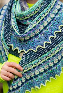 Мудрость гласит: «Каждый узор рассказывает свою историю.» Это великолепное вязаное изделие сочетает в себе яркие оттенки синего и зелёного, создавая эффектный зигзагообразный край. Замысловатый узор и текстура придают ему уникальность и очарование, делая его настоящим украшением гардероба.
