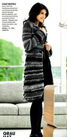 Комбинированное пальто вязаное спицами