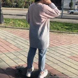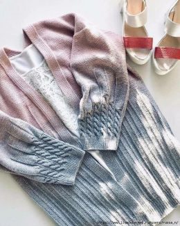 На рукавах аккуратные рельефные косы и мягкие градиентные переходы цвета.