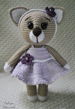 Вязаная крючком милая кошка в платьице. Схема вязания кошечки и наряда для нее от Виктории Шахматовой.