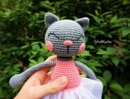 Схема вязания игрушки крючком кошка-балерина