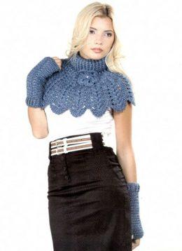 Красивые вязаные манишка и варежки