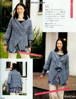 Ажурный жакет представляет собой интересную модель с оригинальным покроем в виде ровного прямоугольного полотна с рукавами. Благодаря своей пластичности и свободным формам эта вещь обеспечит максимальным удобством и комфортом. Ее можно одевать поверх любой одежды, даже очень широкой.