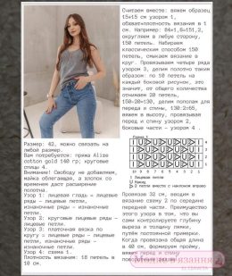 Топ выполнен спицами из мягкой пряжи с оригинальным листовым узором, который придает изделию легкость и воздушность. Отличается аккуратными боковыми вставками и...