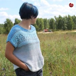 Легкий и воздушный топ, связанный спицами из мягкой пряжи нежного сиреневого оттенка. Особенность модели — сложный ажурный узор, создающий изящные вертикальные...