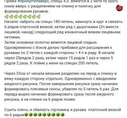Топ выполнен спицами из мягкой пряжи с оригинальным листовым узором, который придает изделию легкость и воздушность. Отличается аккуратными боковыми вставками и...