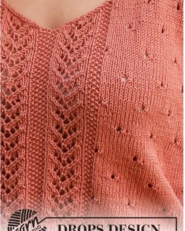 Топ выполнен спицами из мягкой пряжи с оригинальным листовым узором, который придает изделию легкость и воздушность. Отличается аккуратными боковыми вставками и...