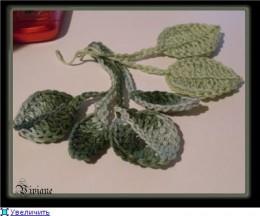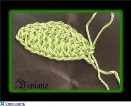 Далее провязываем 1 ВП, и по обратной стороне цепочки делаем то же самое. После этого провязать 7 ВП и оборвать нить. Листик готов.