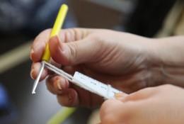 7. Выньте крючок и наденьте первую петлю на линейку. Аналогичным образом вытяните все 36 петель.